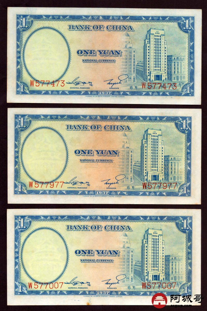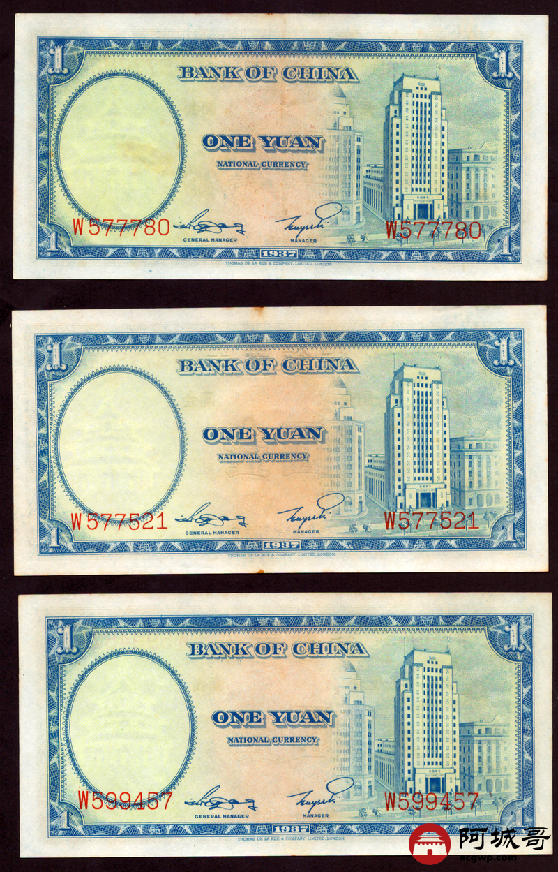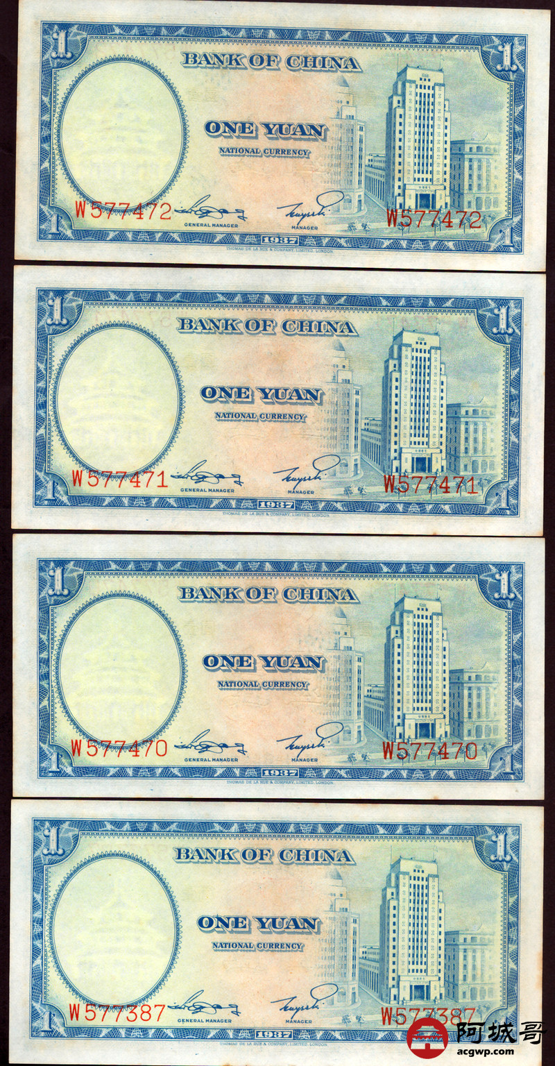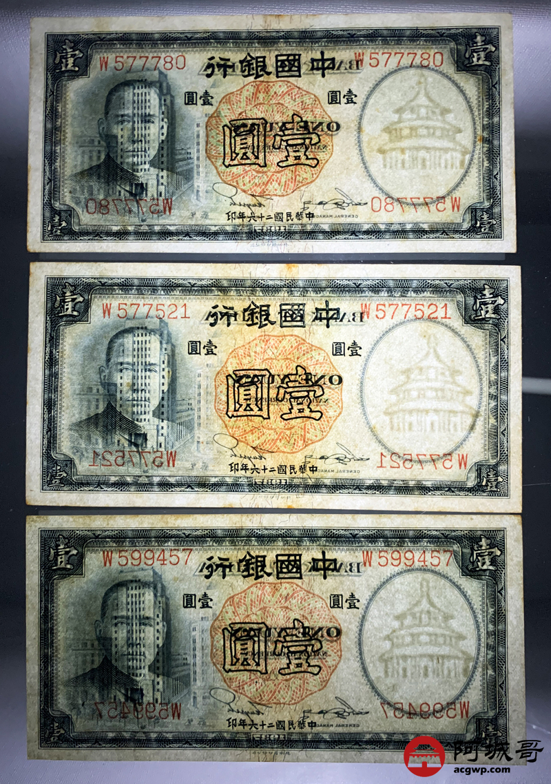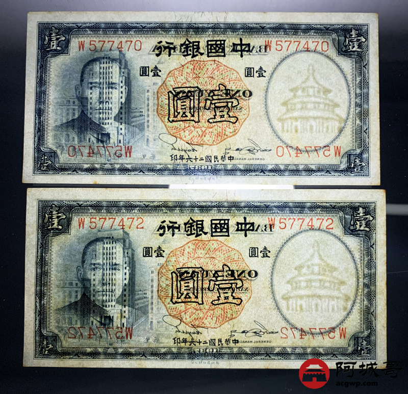 Lot:67 民国二十六年 中国银行 德纳罗版壹圆 十张 原票微有黄斑9张94成新1张92成新