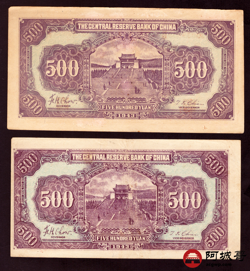 Lot:13 民国三十二年 中央储备银行 伍佰圆 4张 7至73成新