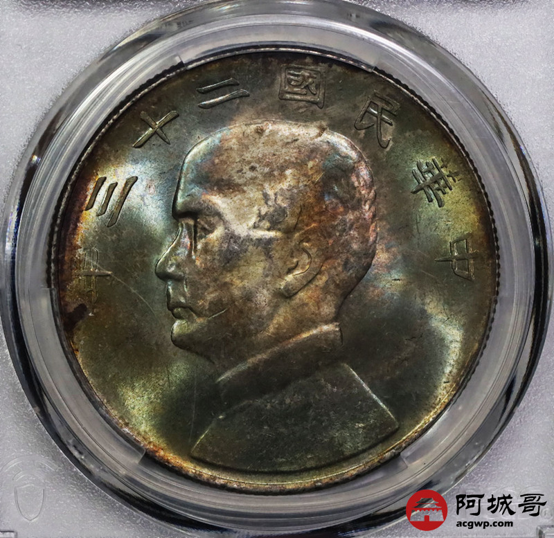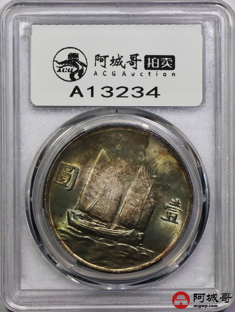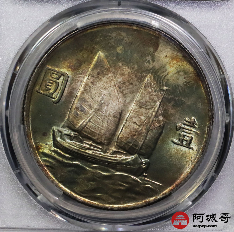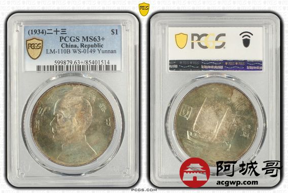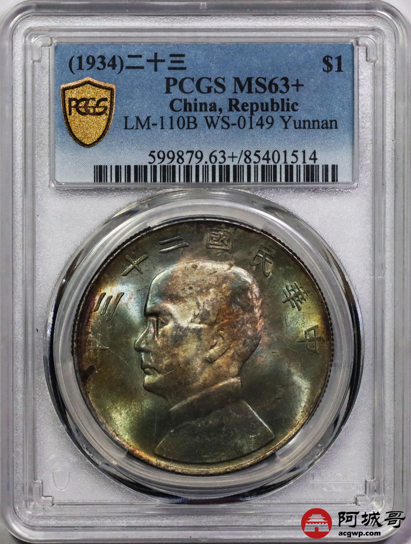 Lot:2 原光翠绿色 清新环五彩 二十三年船洋 云南版 PCGS MS63+