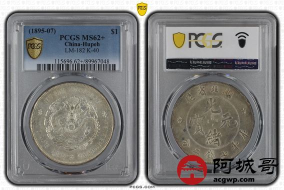 Lot:16 黄油车轮光 湖北光绪七钱二分 PCGS MS62+