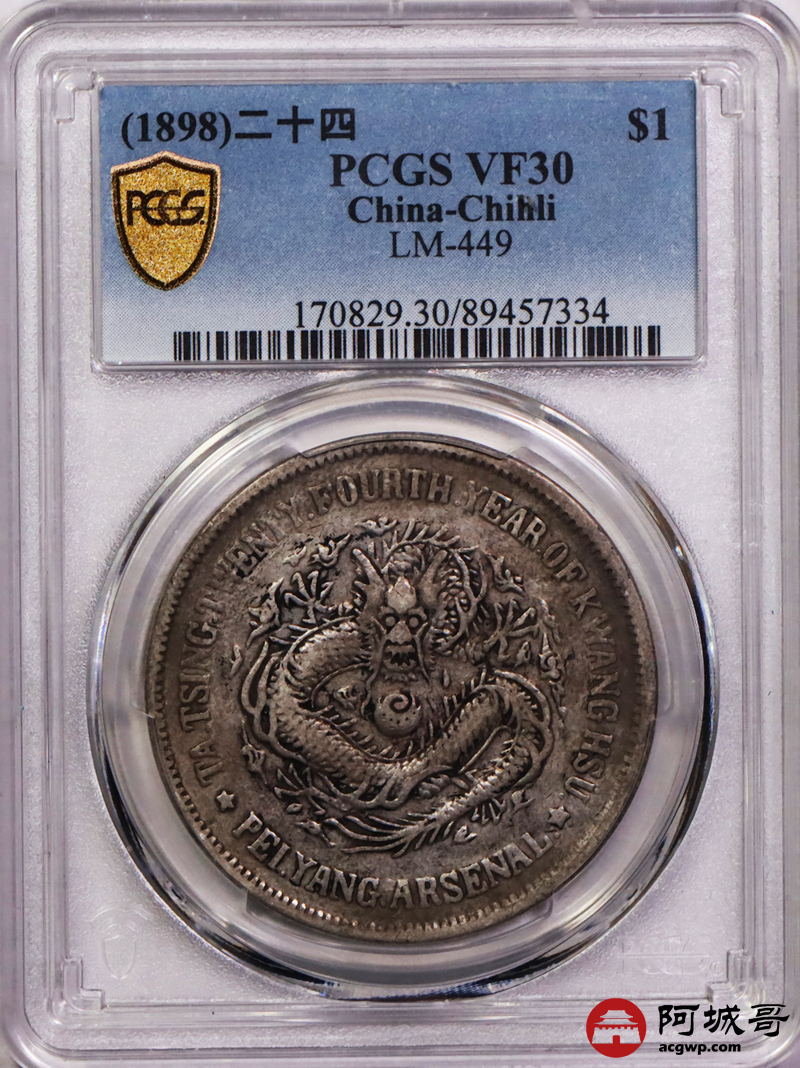 Lot:23 北洋机器局二十四年壹元 原汁原味 PCGSVF30