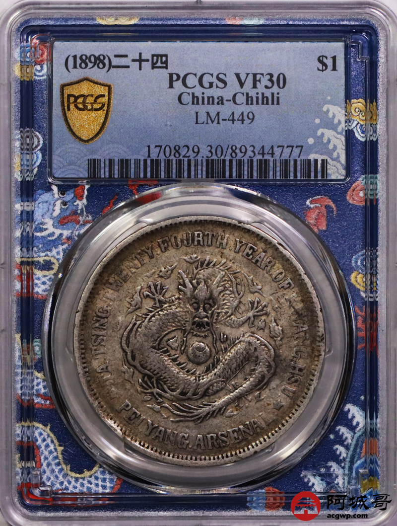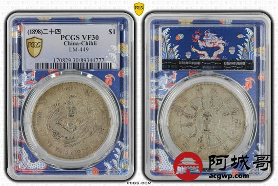 Lot:22 北洋机器局二十四年壹元 原汁原味 PCGS VF30
