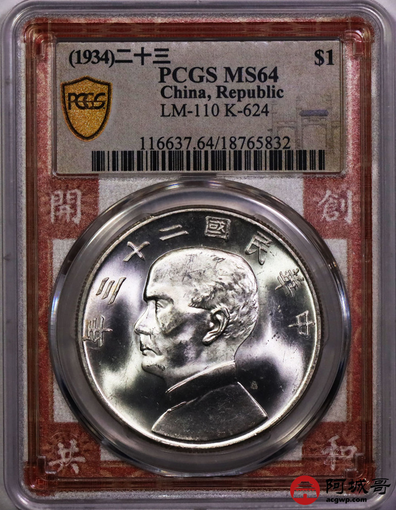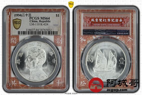 Lot:5 原色曝光 二十三年船洋 PCGS MS64