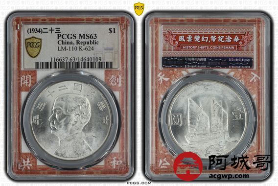 Lot:1 原色曝光 二十三年船洋 PCGS MS63