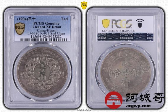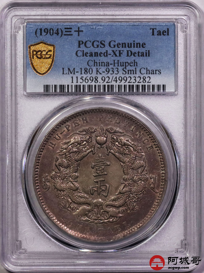 Lot:15 深打粉彩底板 民国三十年湖北双龙一两 小字 PCGS XF