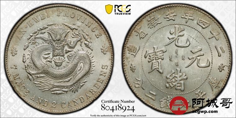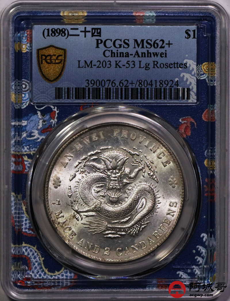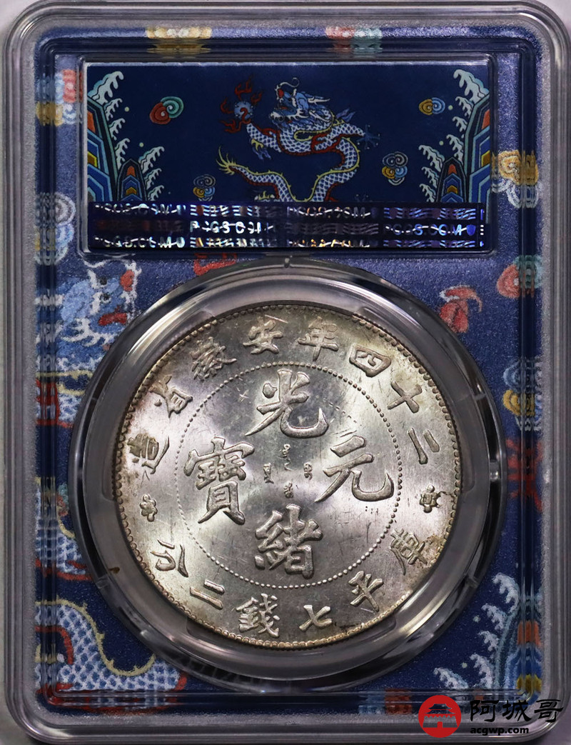 Lot:10 曝光深打 二十四年安徽光绪七钱二分 PCGS MS62+