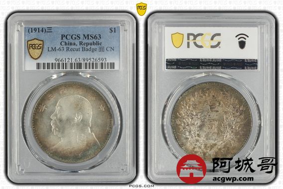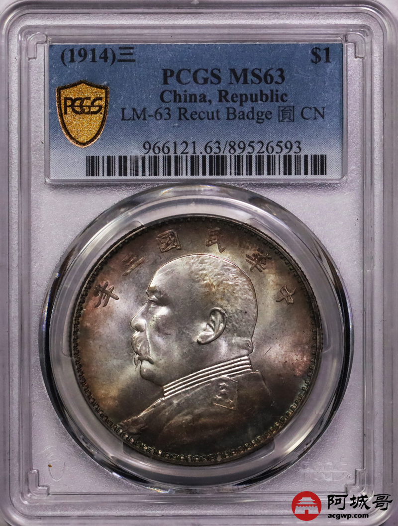 Lot:28 五彩原光 三年大头三角圆 修肩章 PCGS MS63