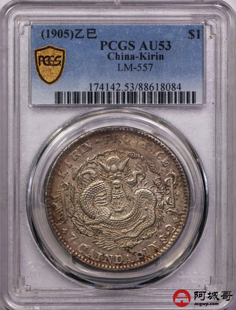Lot:19 深打 黄油彩 吉林乙巳七钱二分 PCGS AU53