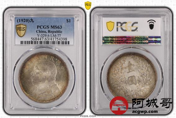 Lot:4 五彩原光 九年精发壹圆 PCGS MS63