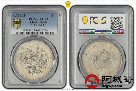 Lot:17 原味 黄油转光 造币总厂七钱二分 PCGS AU53
