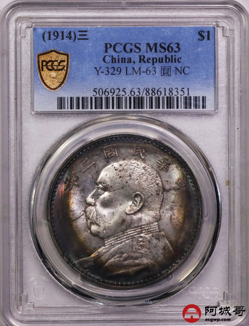 Lot:27 原光 环彩深打 三年大头壹圆 PCGS MS63