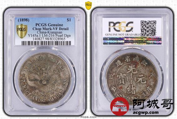 Lot:9 原味老包浆 江南戊戌七钱二分珍珠龙 PCGS VF