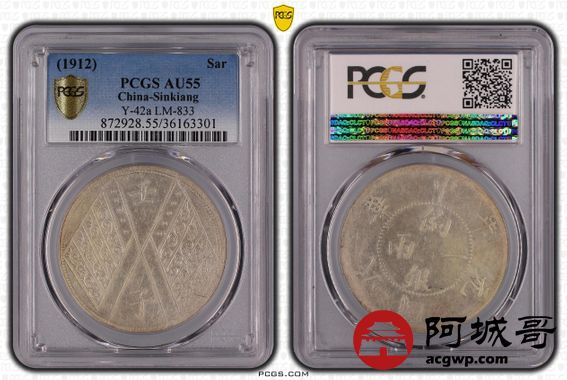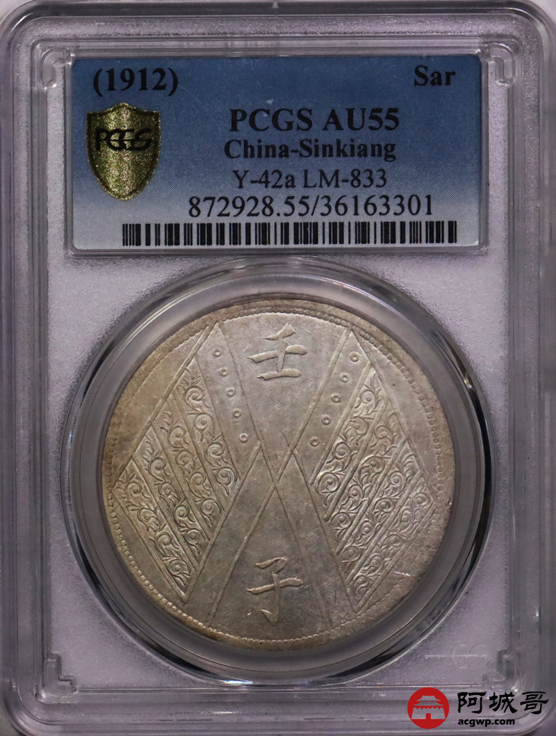 Lot:7 深打 全字口 新疆壬 一两 四排花 PCGS AU55 更高仅四枚