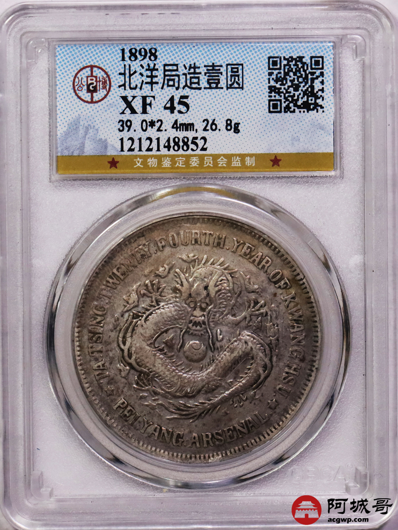 Lot:16 原味老包浆 北洋二十四年机器局壹圆 公博 XF45