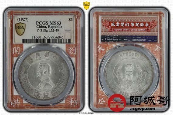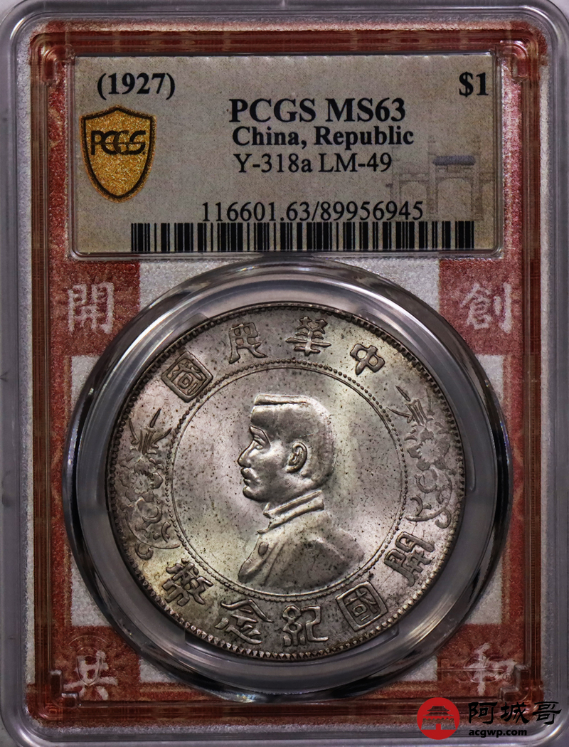 Lot:8 原光深打 孙像小头壹圆 PCGS MS63