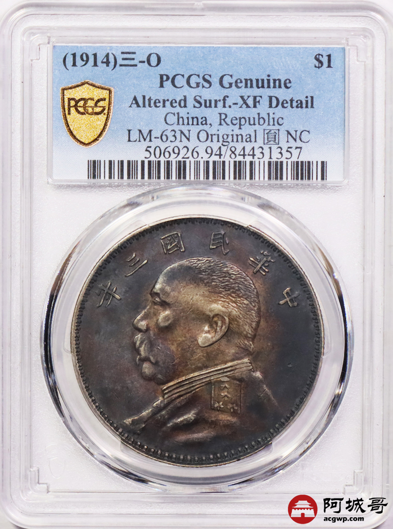 Lot:6 浓郁酱彩 民国三年大头 O版 PCGS XF