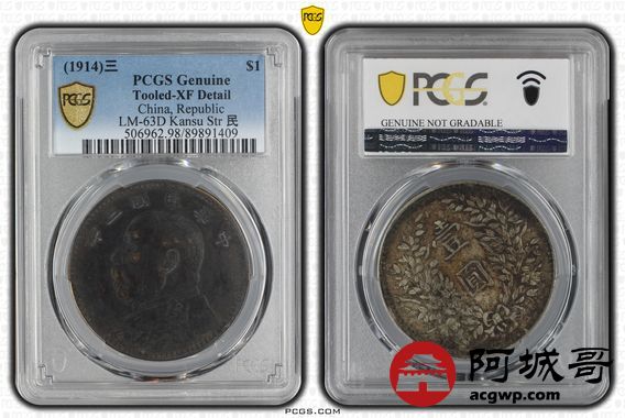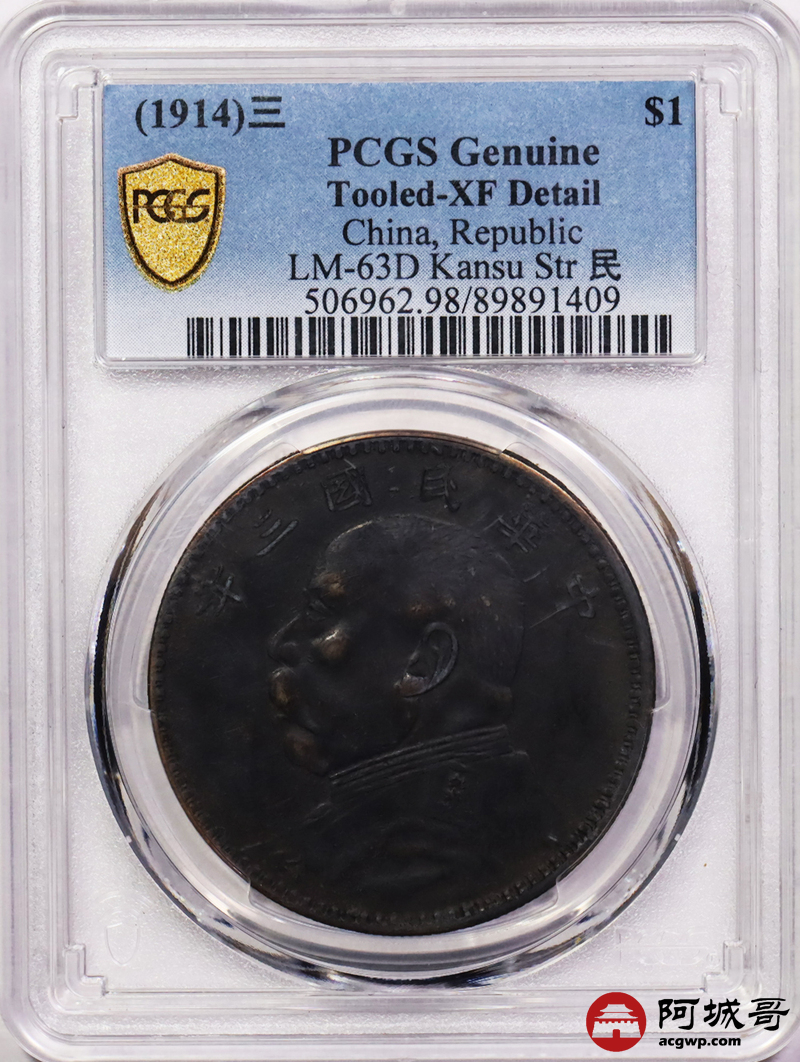 Lot:1 民国三年大头甘肃版 酱彩包浆 PCGS XF