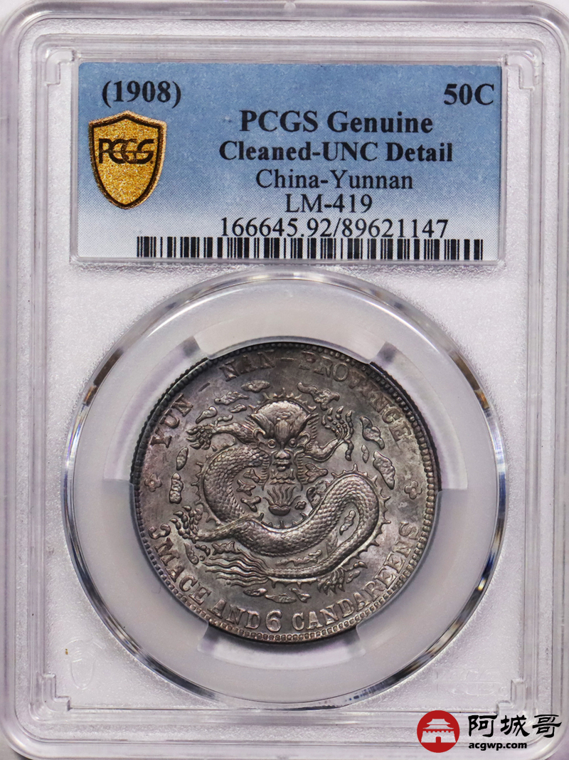 Lot:23 原光灰色包浆 老云南光绪三钱六分 PCGS UNC