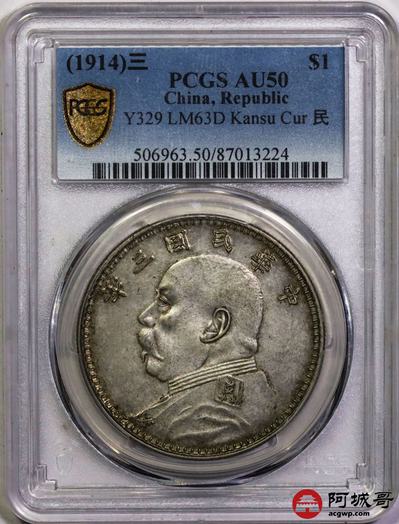 Lot:26 原味深打 三年大头甘肃曲笔民 PCGS AU50