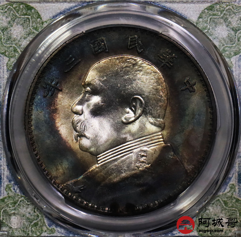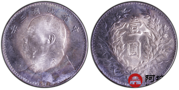 Lot:27 a双面紫罗兰环彩 三年大头三角圆 PCGS MS63+