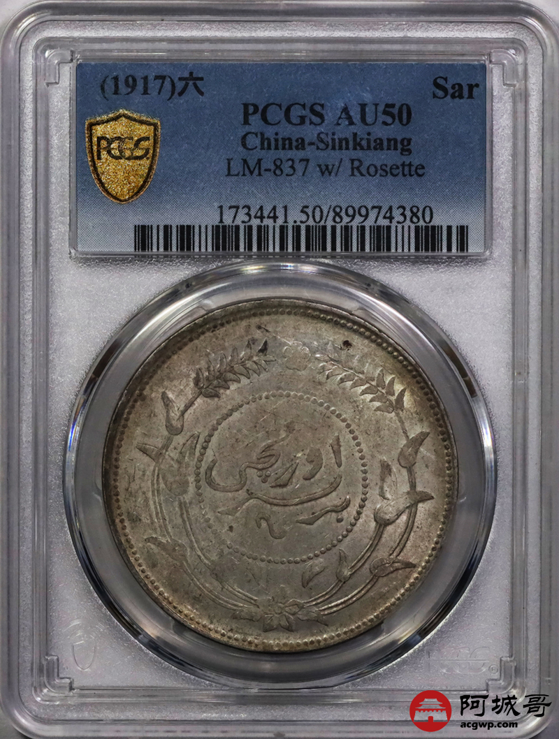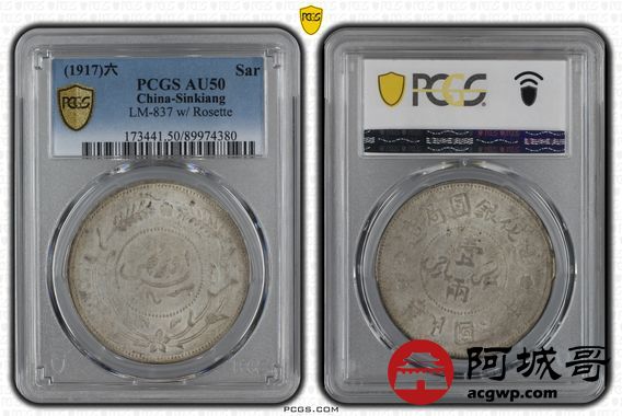 Lot:20 粉光 全珠圈全字口 迪化六年一两 PCGS AU50