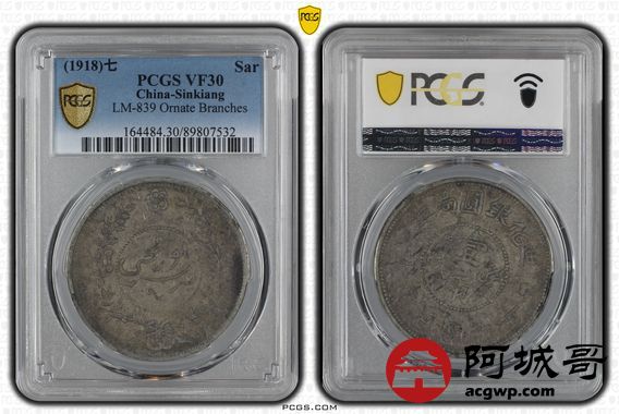 Lot:5 原味 包浆 迪化七年一两 PCGS VF30
