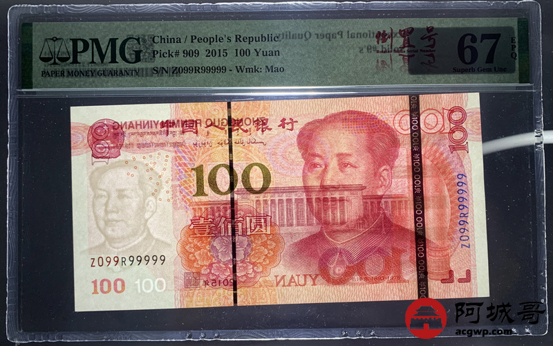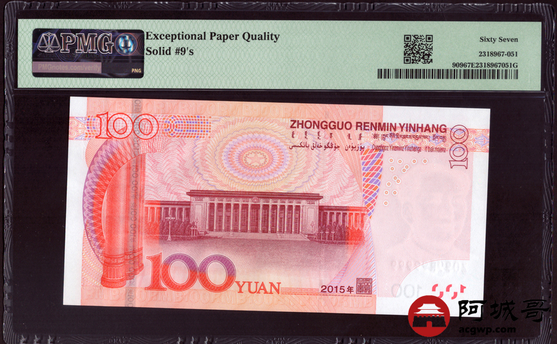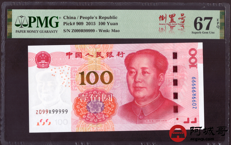 Lot:32 15年 中国人民银行壹佰圆 PMG 67EPQ 倒置号