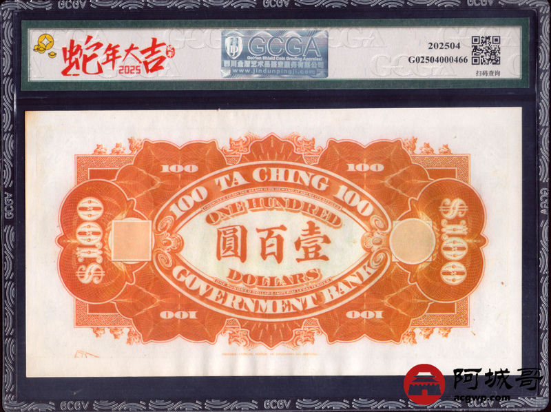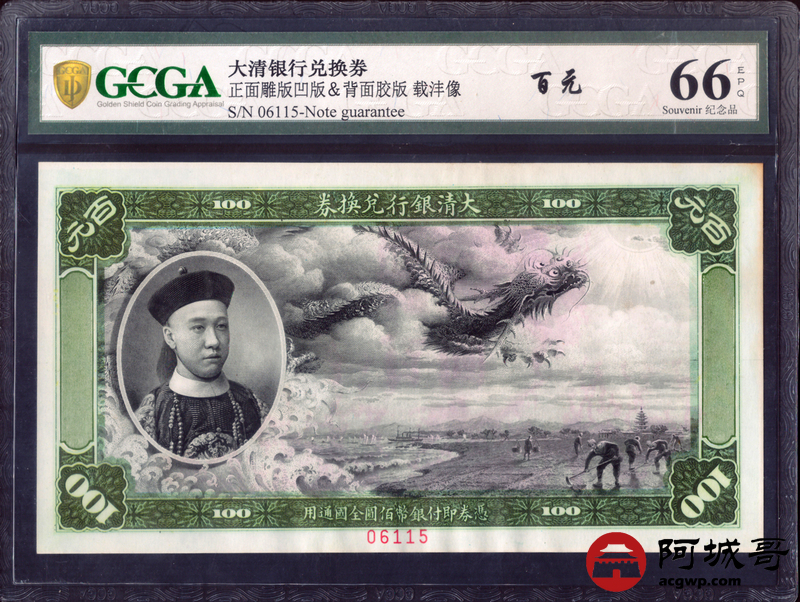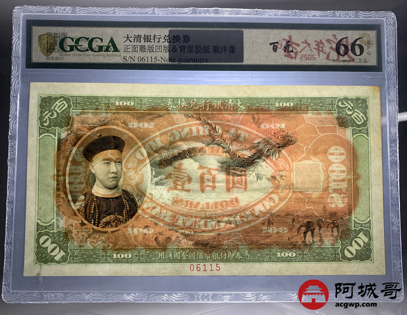 Lot:15 大清银行兑换券 100元 GCGA 66EPQ