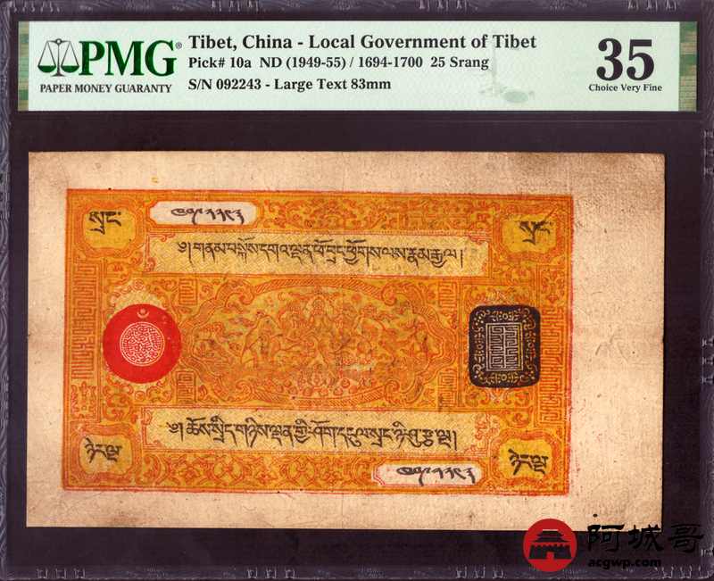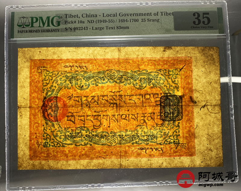 Lot:20 西藏老纸币 25两 PMG 35 原汁原味、品相自然