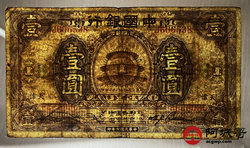 Lot:6 民国7年 壹圆 中国银行 天津地名 69成新