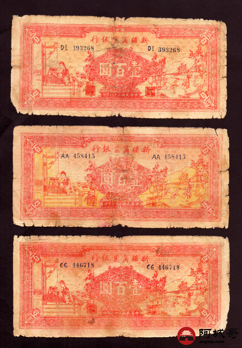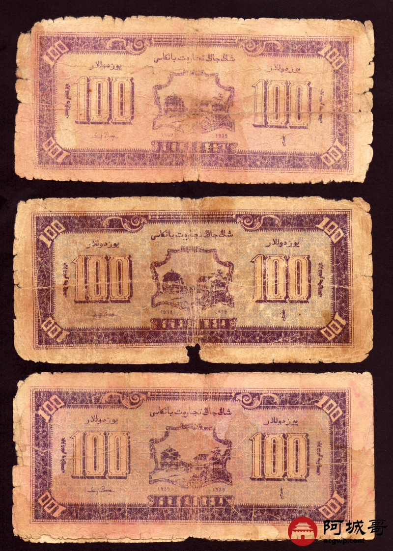 Lot:75 民国二十八年 新疆商业银行 壹佰圆 10张 56成新