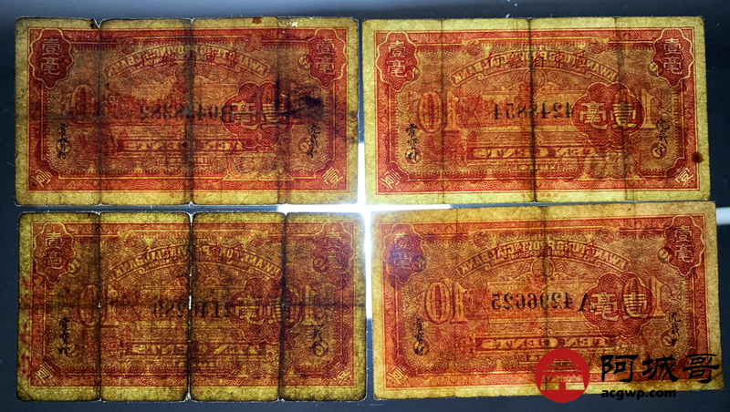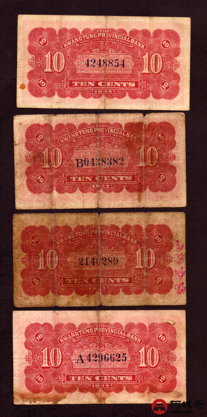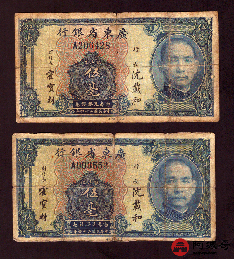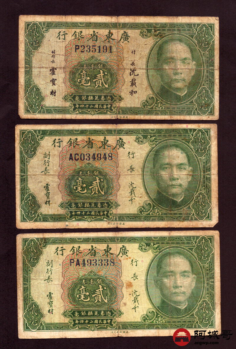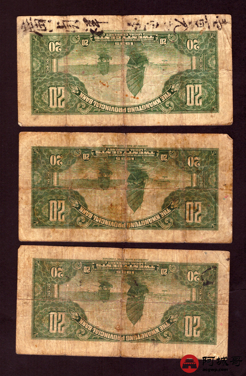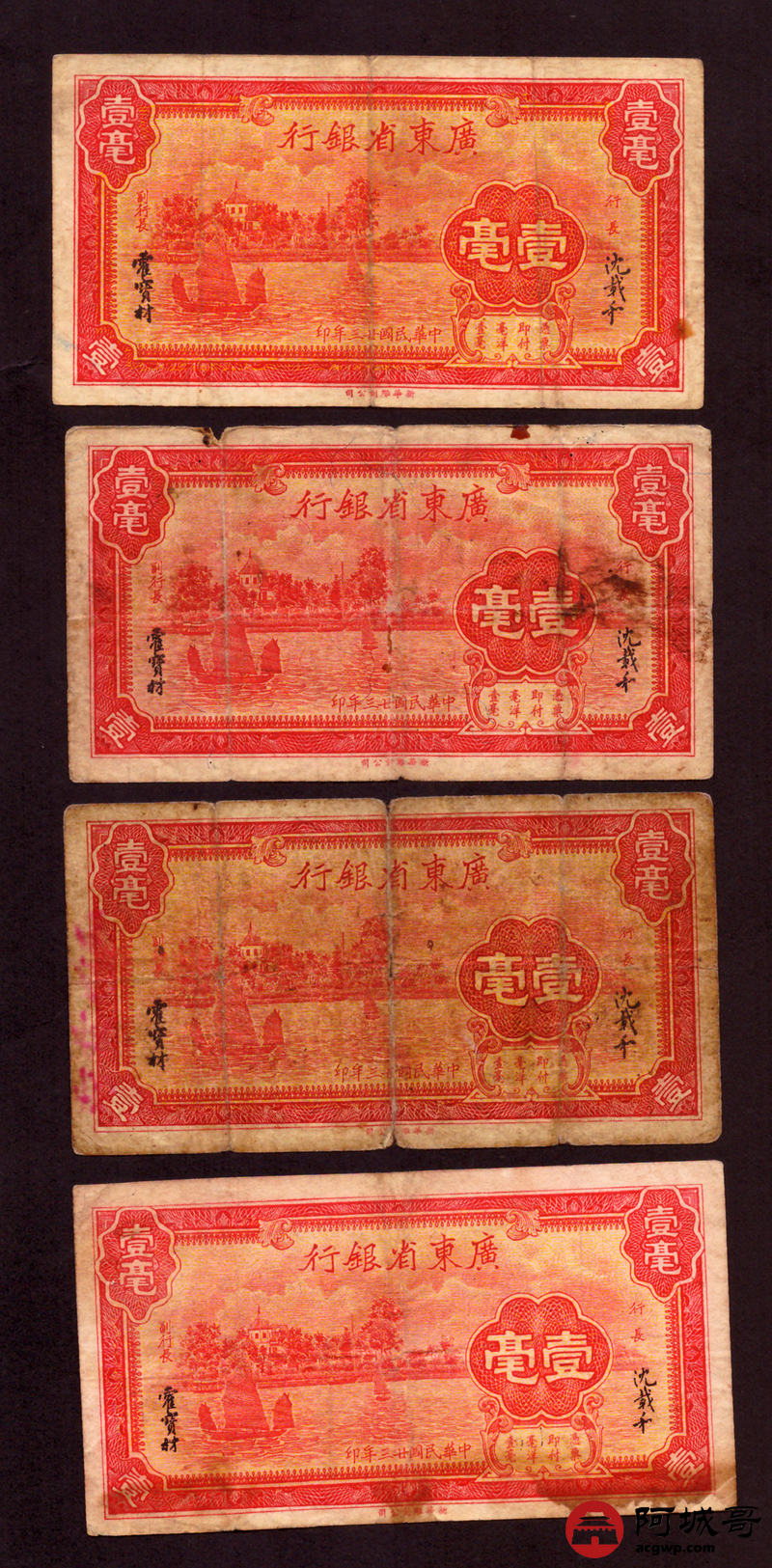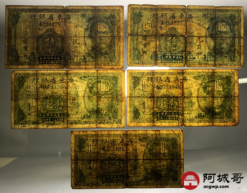 Lot:42 民国时期广东省银行 银毫券壹毫、贰毫 、伍毫 9张 67至7成新