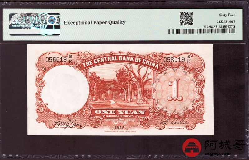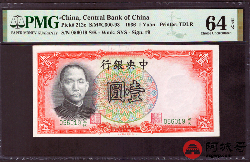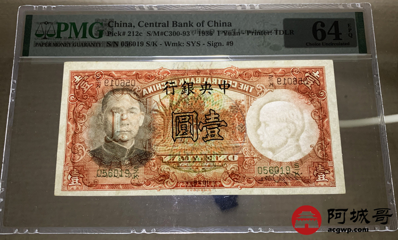 Lot:28 民国二十五年 中央银行 壹圆 PMG 64EPQ 此种签名少见
