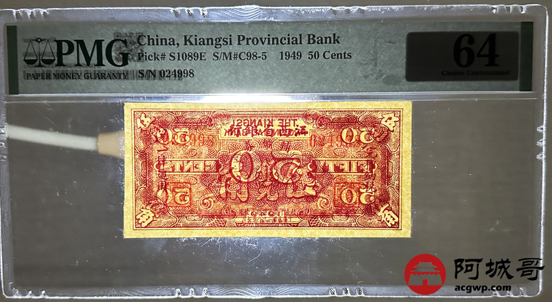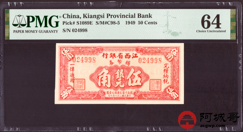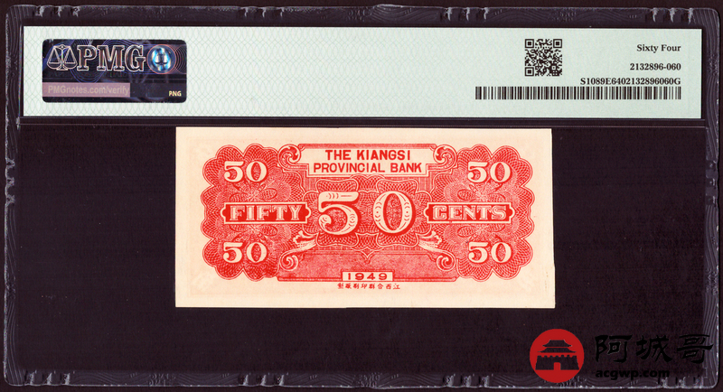 Lot:58 民国38年 江西省银行 伍角 PMG 64 尾号98