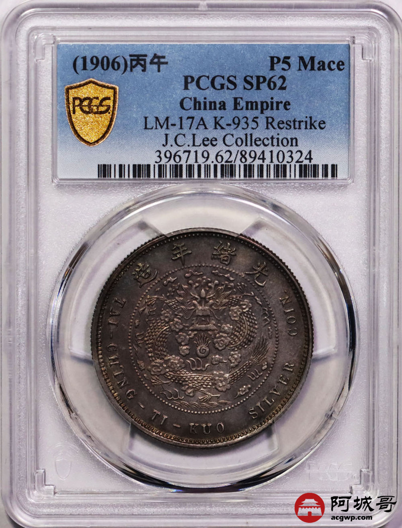 Lot:null 大清银币户部中字丙午伍钱 名家旧藏 全深打老五彩包浆PCGS SP62
