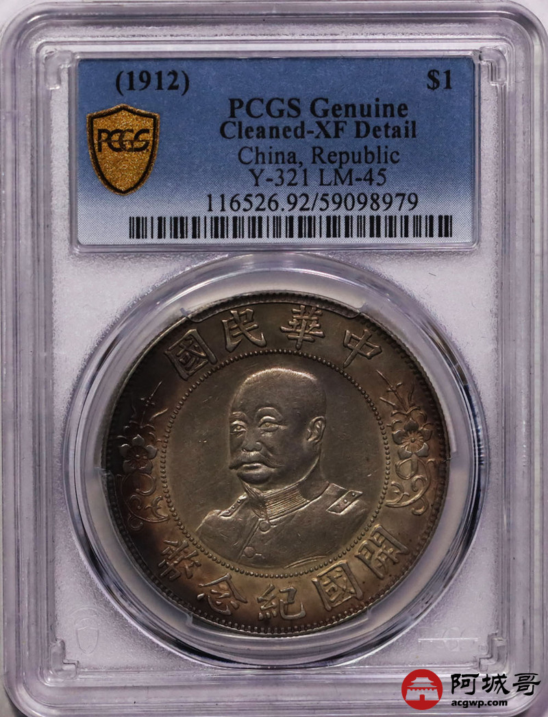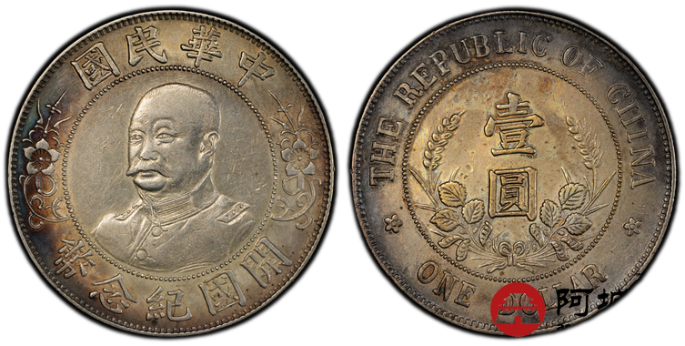 Lot:6 深打 酱彩底板 黎元洪纪念币 PCGS XF
