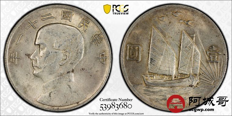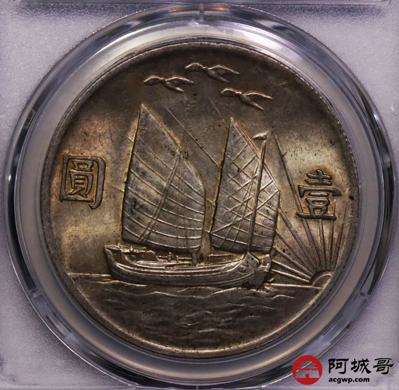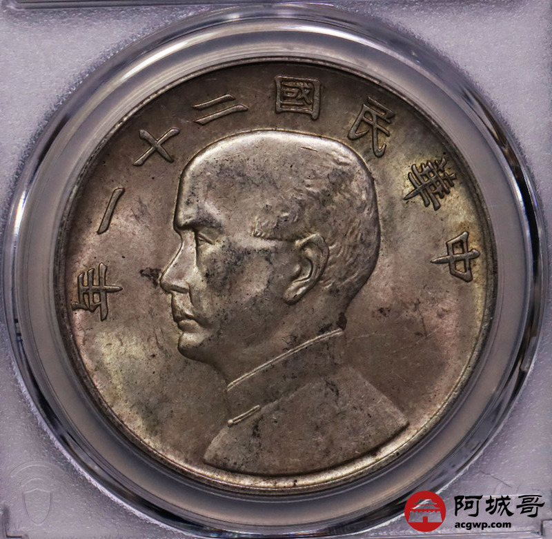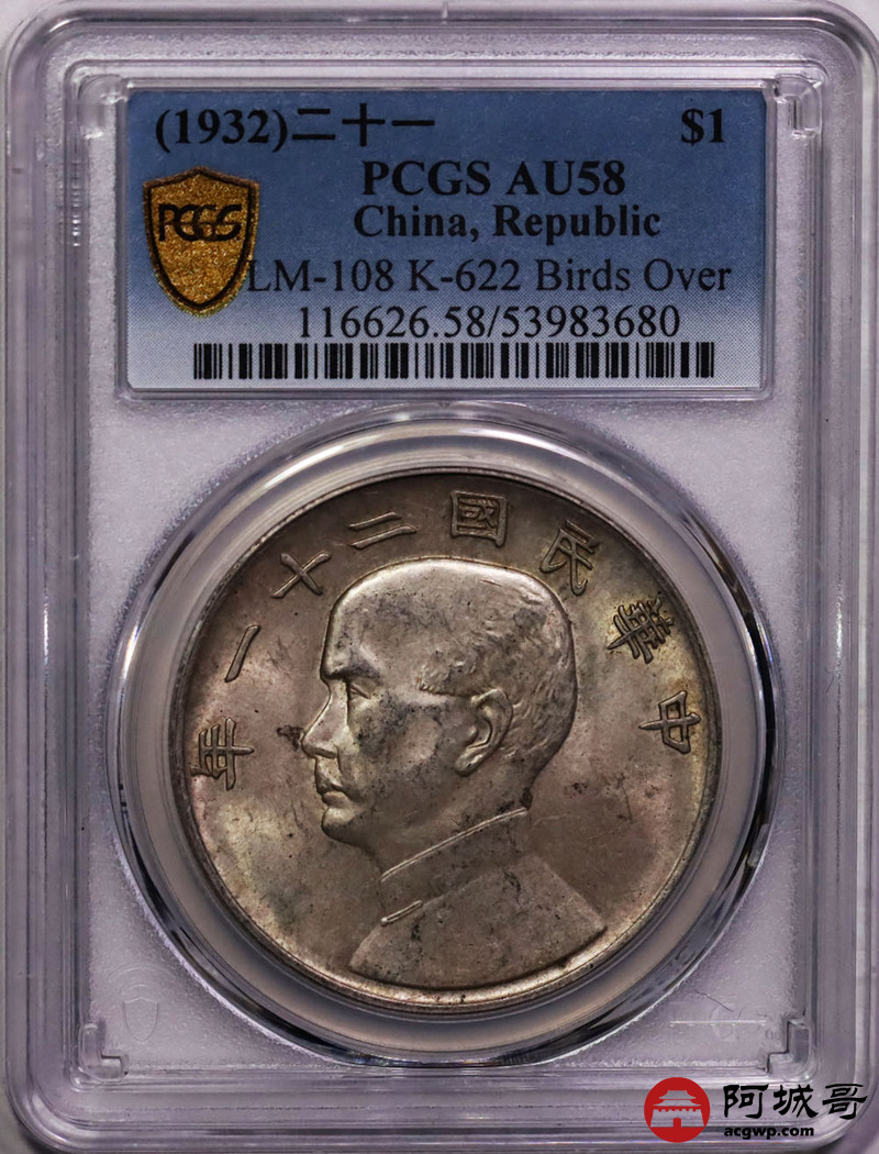 Lot:12 民国二十一年三鸟壹圆转光状态PCGS AU58
