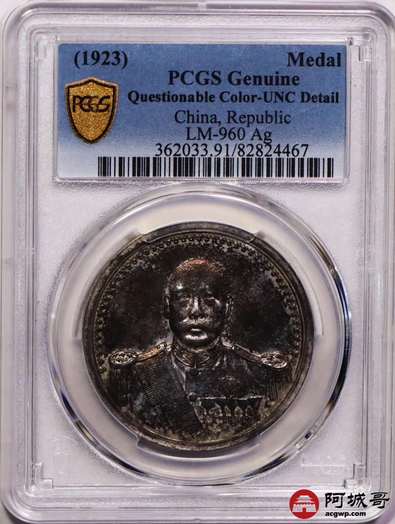 Lot:null 五彩包浆曹坤纪念银章底板拉丝PCGS UNC
