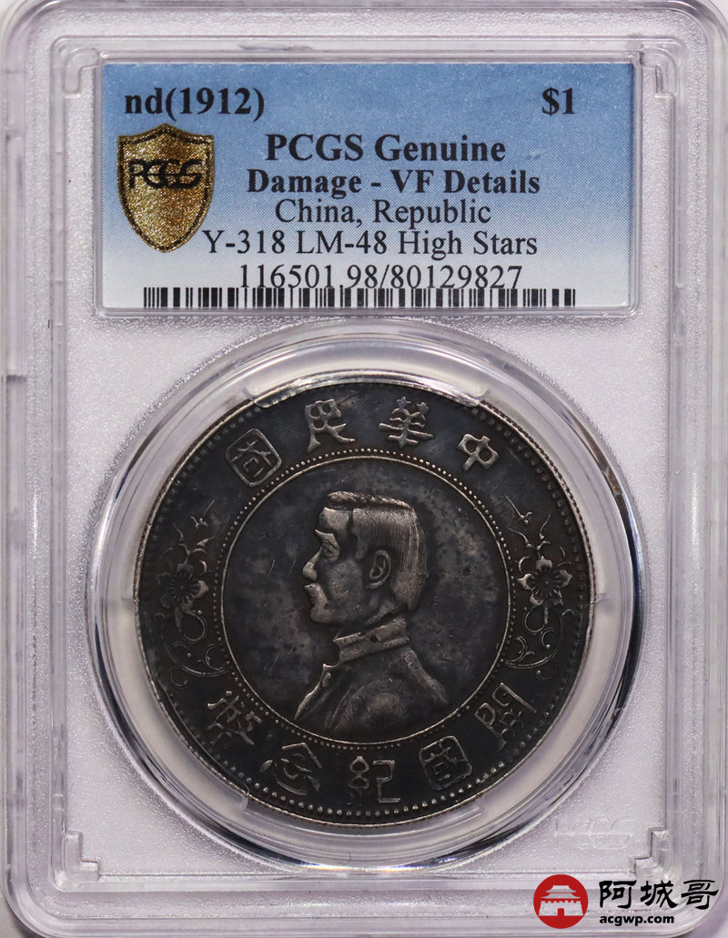 Lot:null 全深打酱彩老包浆 孙像上五星纪念币PCGS VF