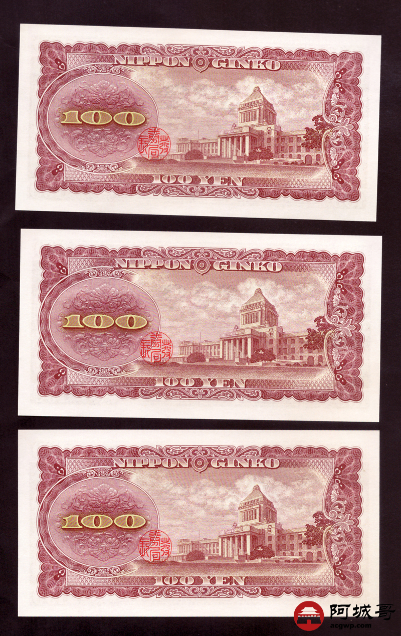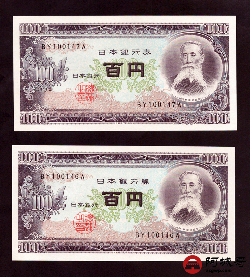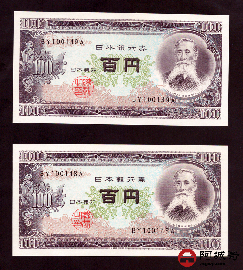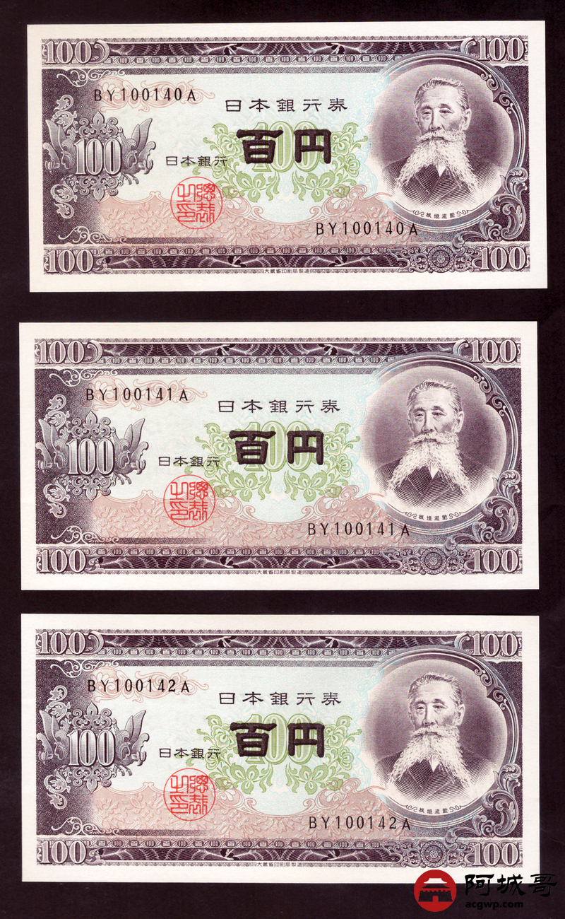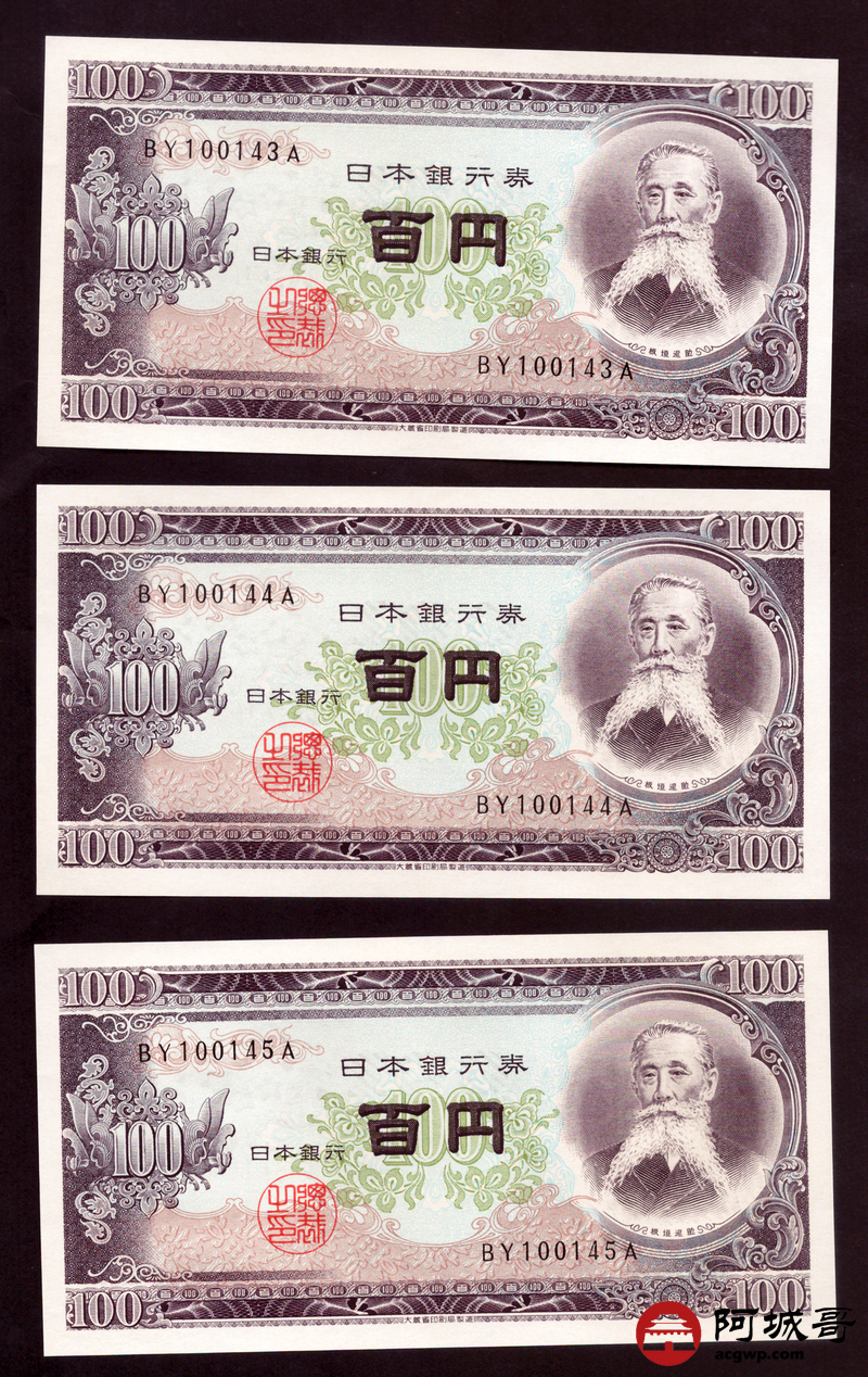 Lot:17 日本银行券 百元 十连号 原票97至全新