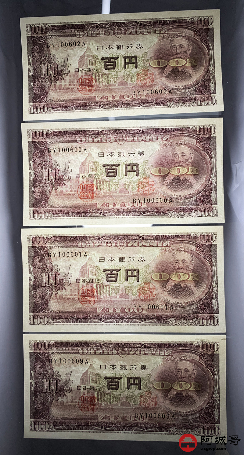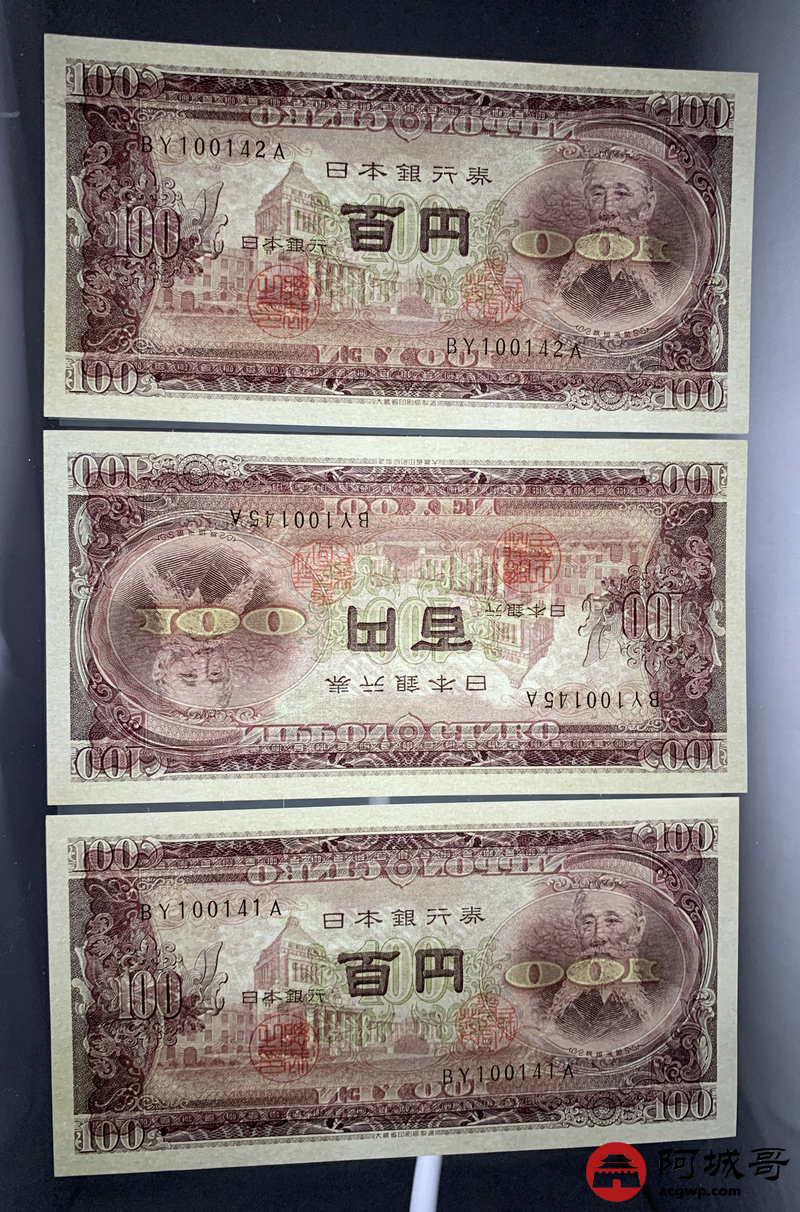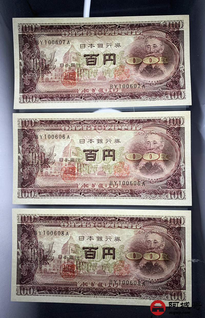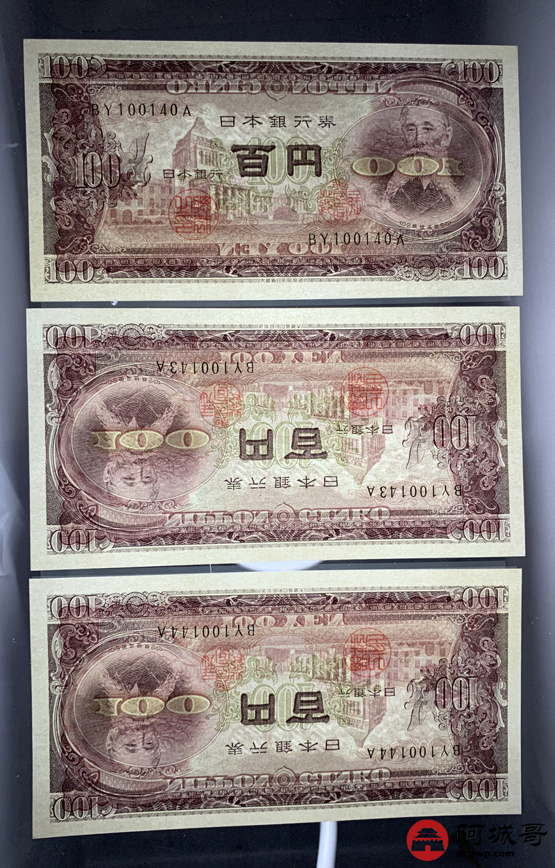 Lot:22 日本银行券 百元 十连号 原票全新 大部分为倒置号