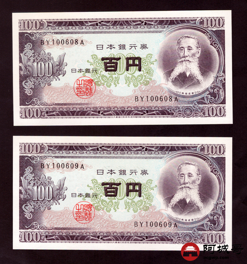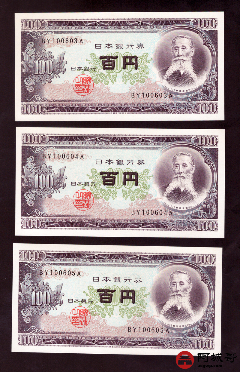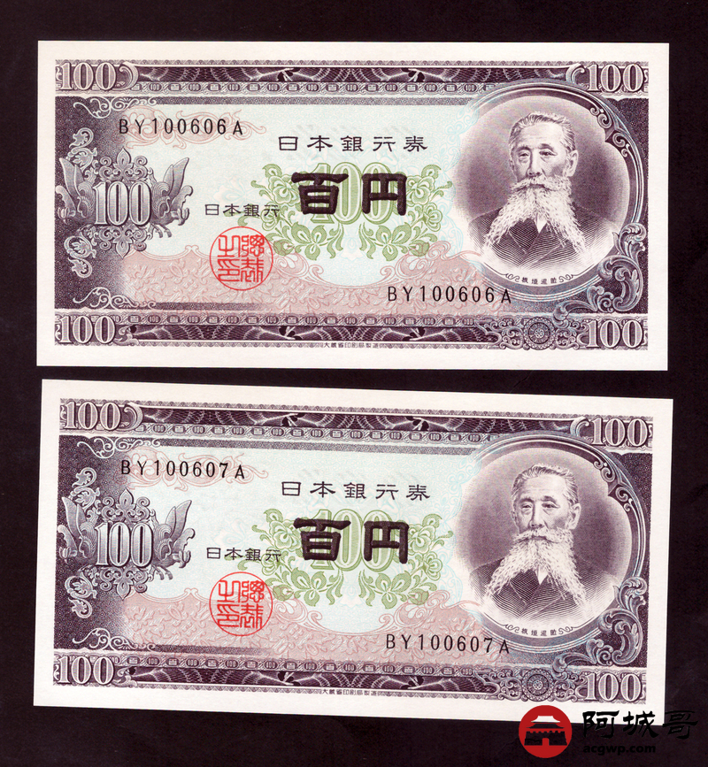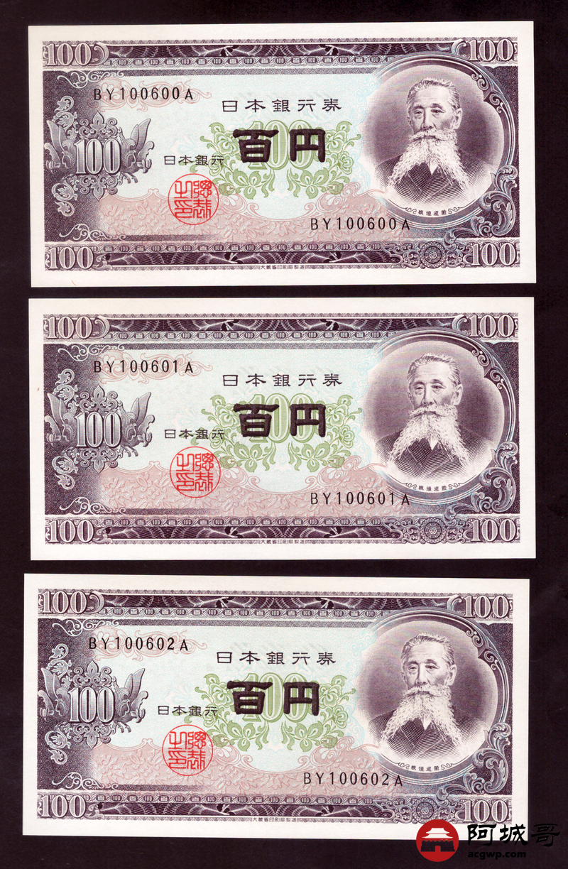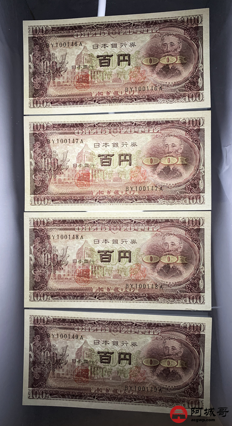 Lot:22 日本银行券 百元 十连号 原票全新 大部分为倒置号