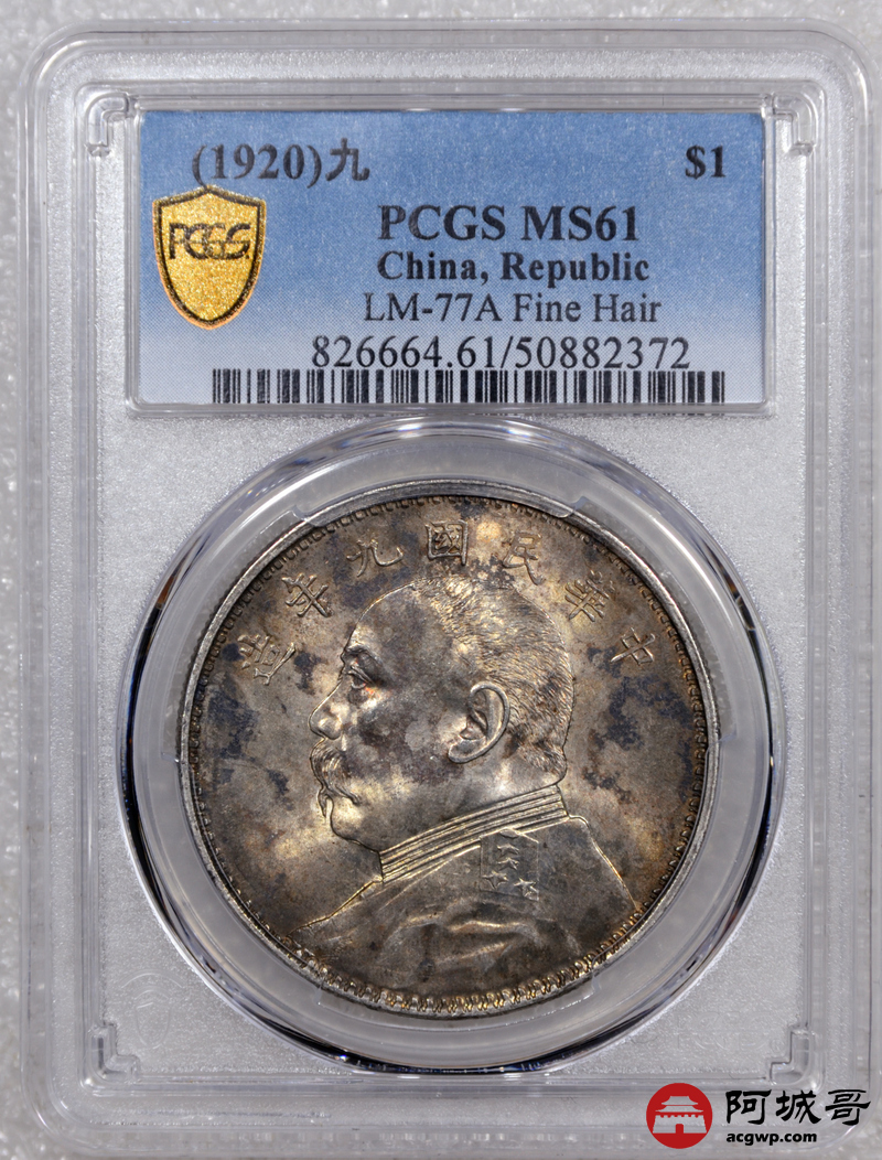 Lot:3 原光 酱彩 九年精发壹圆 PCGS MS61