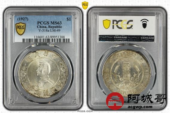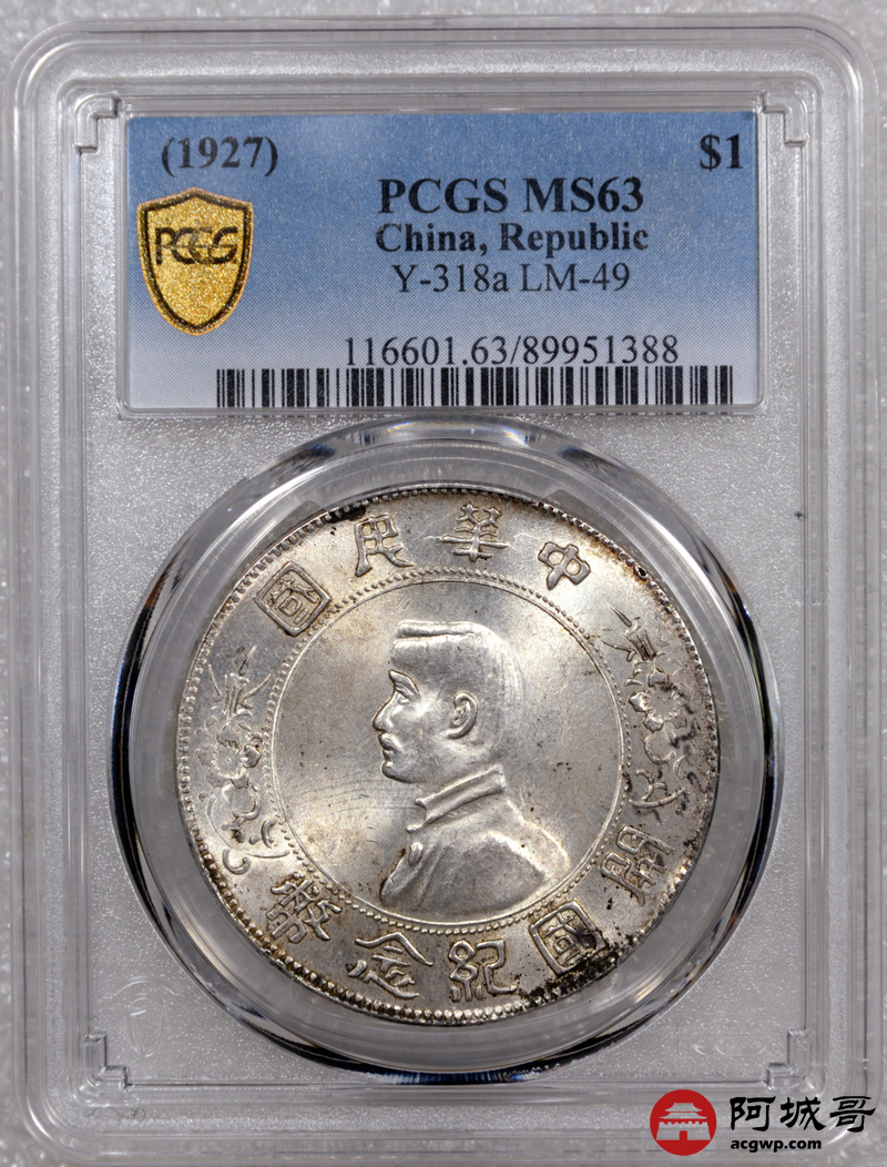 Lot:2 原光 黄油彩 孙像小头壹圆 PCGS MS63