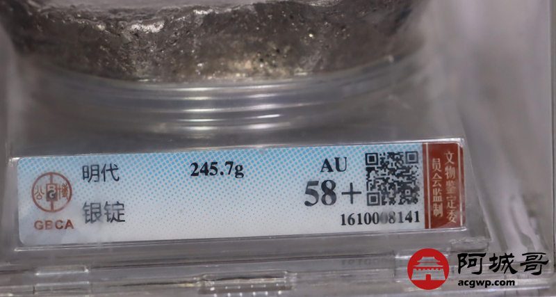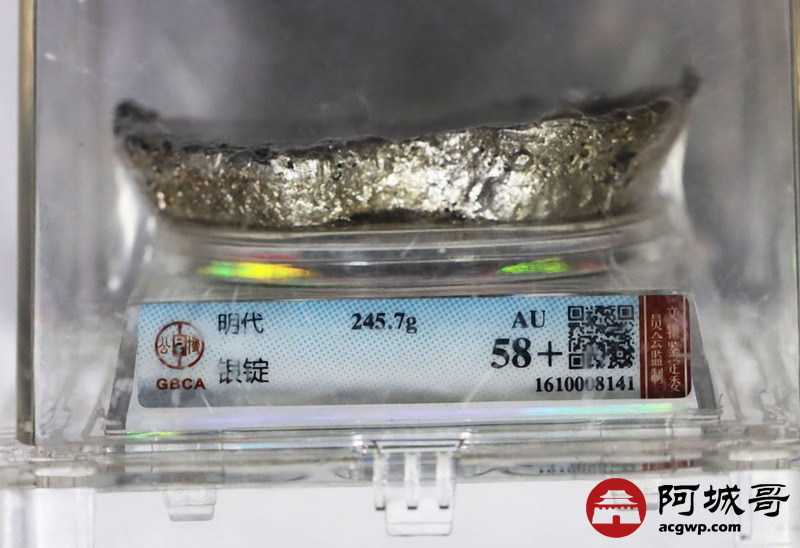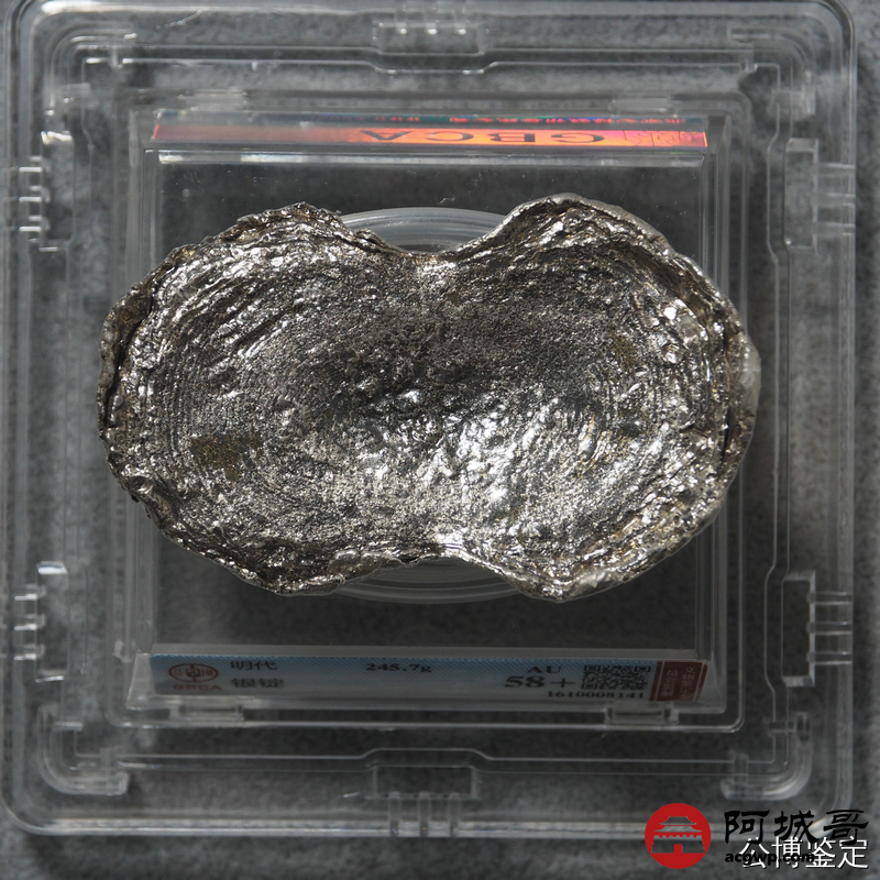 Lot:21 明代-银锭 245.7克 金珠挂底 公博 AU58+