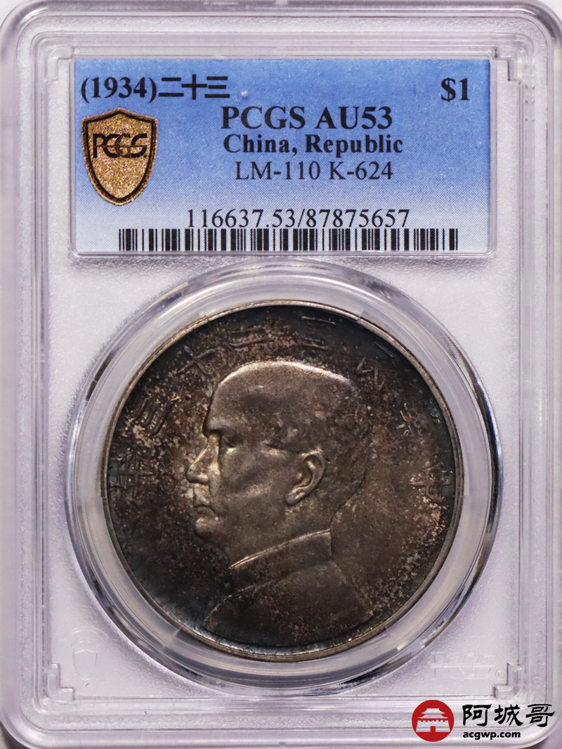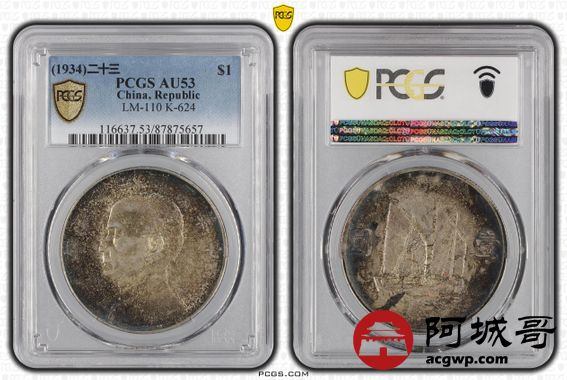 Lot:25 原味 酱彩 二十三年船洋 PCGS AU53