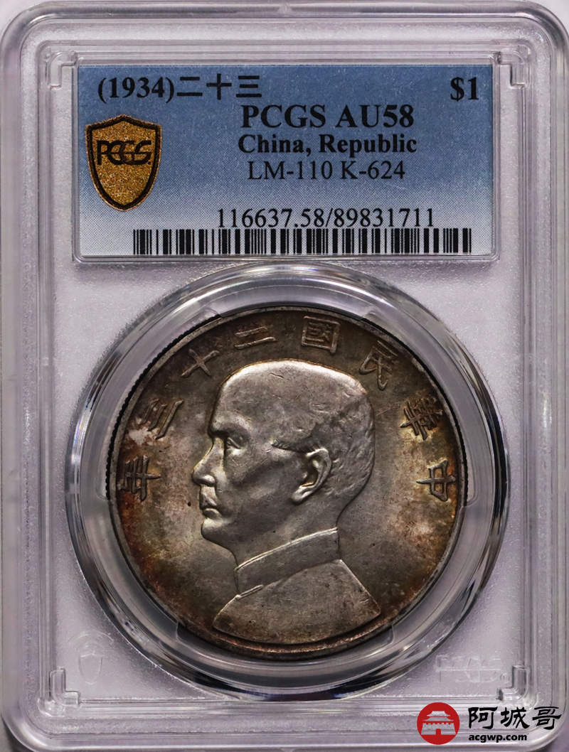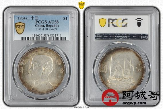 Lot:23 环彩转光 二十三年船洋 PCGS AU58