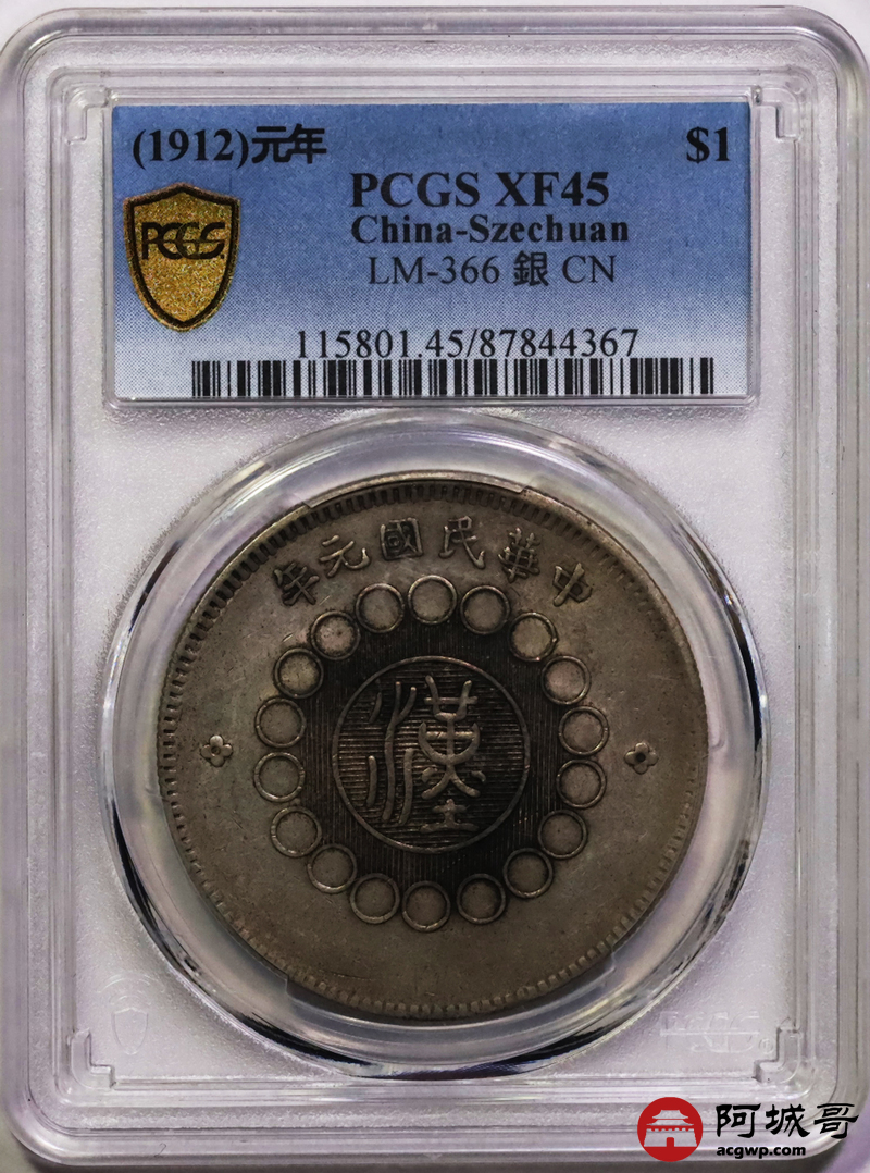 Lot:19 原味老包浆 四川军政府壹圆 PCGS XF45