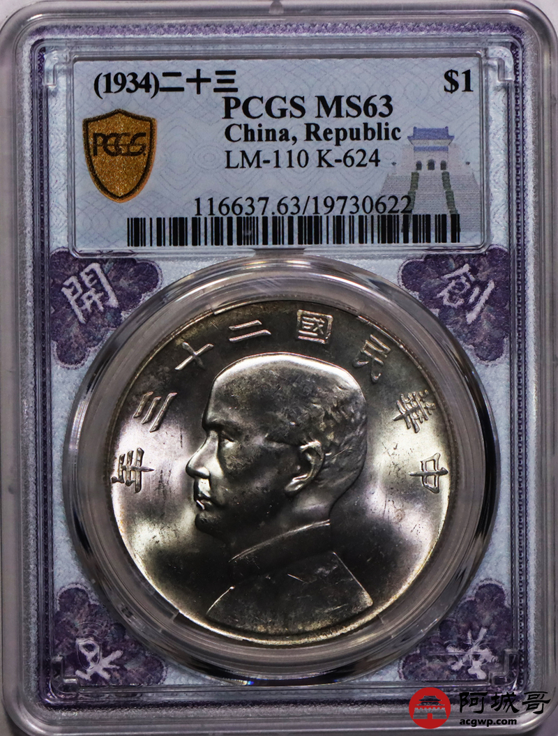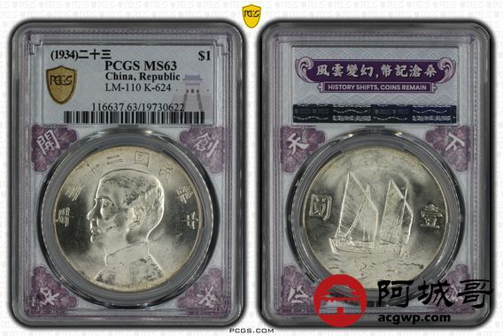 Lot:10 原色曝光 二十三年船洋 PCGS MS63