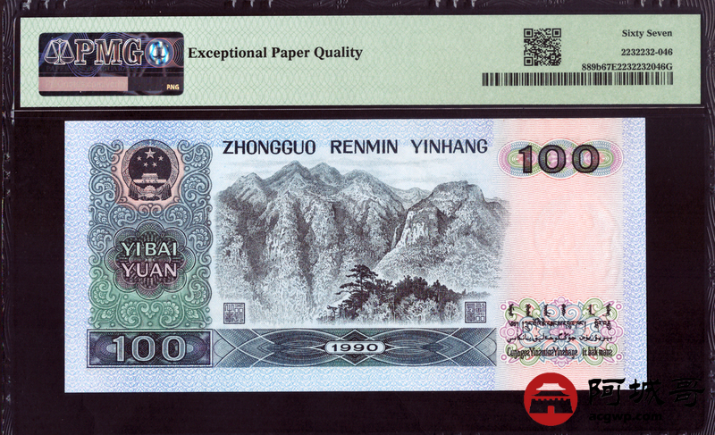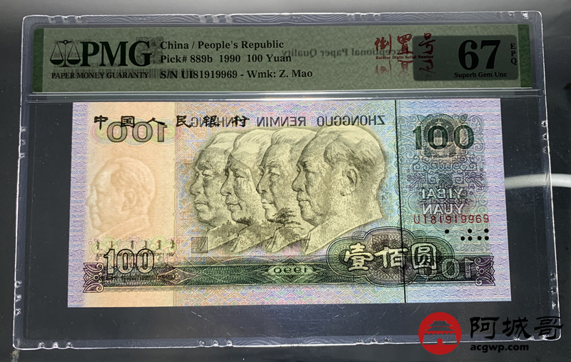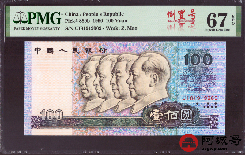 Lot:31 四版 1990年 中国人民银行壹佰圆 PMG 67EPQ 倒置号
